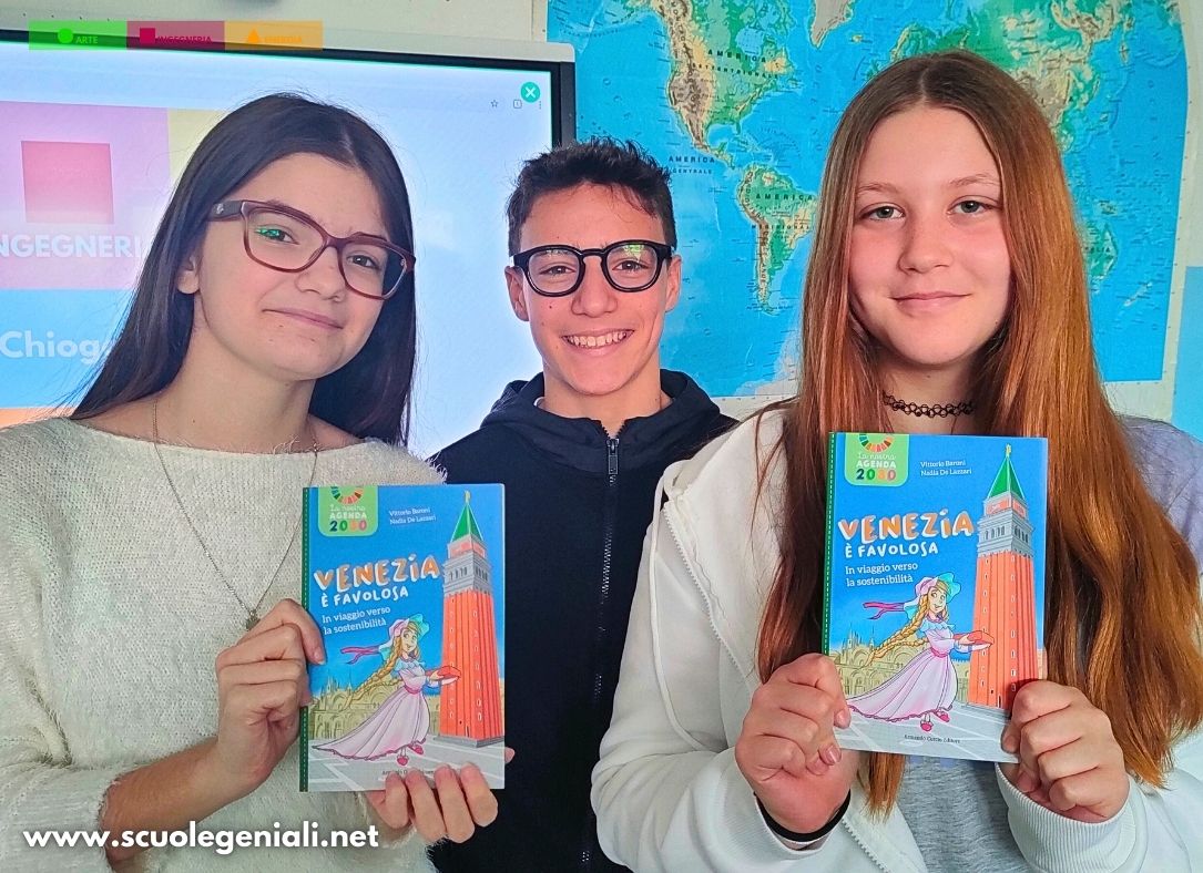 Gli alunni hanno spiegato le idee ispiratrici accolte da un grande applauso e la validazione della rappresentante della Commissione Giovani dell’Ordine Ingegneri Venezia. L’Autore del progetto Vittorio Baroni ha spiegato le tappe del percorso e ha consegnato il libro di Educazione Civica “Venezia è favolosa – In viaggio verso la sostenibilità” (Armando Curcio Editore, co-autrice Nadia De Lazzari).