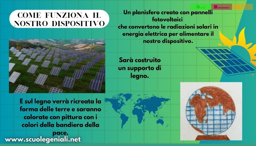 21 febbraio 2025 – A Malcontenta di Mira è stato avviato il sesto progetto di Arte Ingegneria Energia curato dalla Classe 3^D della Scuola Gino Strada, I.C. Baseggio. Il progetto intitolato “La Scuola è il nostro mondo” è ispirato da una massima di Plutarco di quasi 2000 anni fa: “la mente non è un vaso da riempire, ma un fuoco da accendere”. Gli studenti puntano all’obiettivo di poter studiare nel giardino della loro Scuola stando seduti su comode sedie create con materiali di recupero. Nella loro aula ideale all’aperto ci sarà un planisfero creato con pannelli fotovoltaici che convertono le radiazioni solari in energia elettrica per alimentare i dispositivi. Il progetto prevede di costruire un supporto di legno dove verrà ricreata la forma delle terre con i colori della bandiera della Pace.