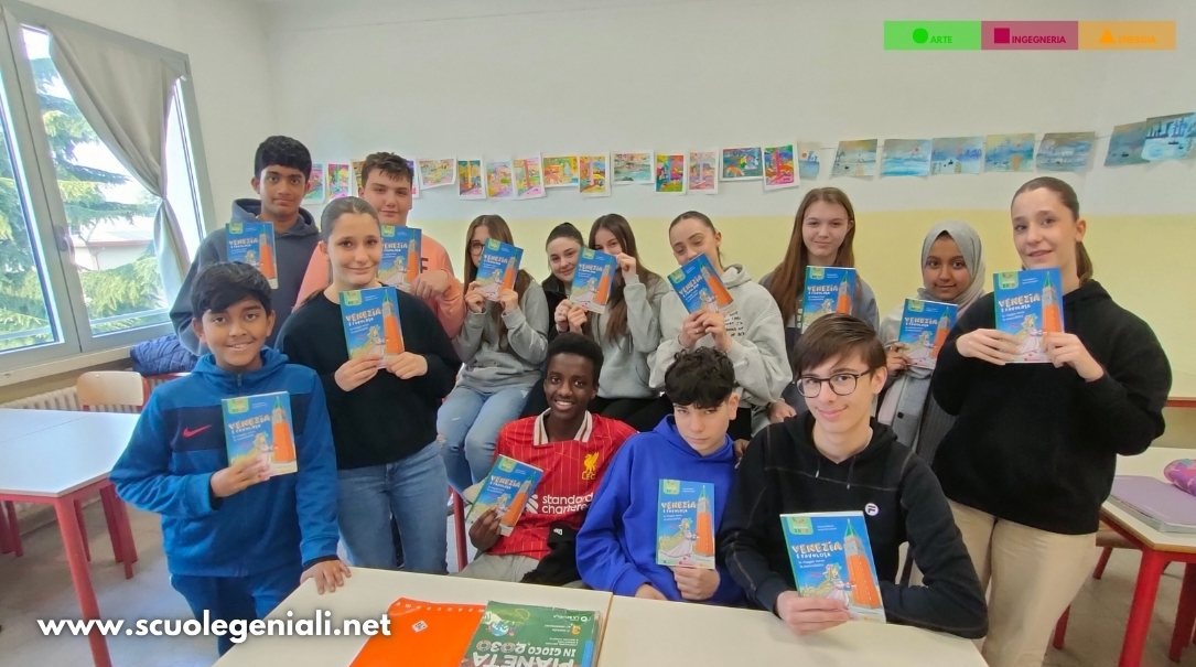 Il progetto è stato presentato da tre studenti. Tanti applausi hanno accolto il timbro di approvazione da parte del referente della Commissione Giovani dell’Ordine Ingegneri Venezia e rappresentante di AI progetti. L’Autore Vittorio Baroni ha consegnato il libro di Educazione Civica “Venezia è favolosa – In viaggio verso la sostenibilità” (Armando Curcio Editore, co-autrice Nadia De Lazzari) spiegando l’importanza degli obiettivi Agenda 2030.